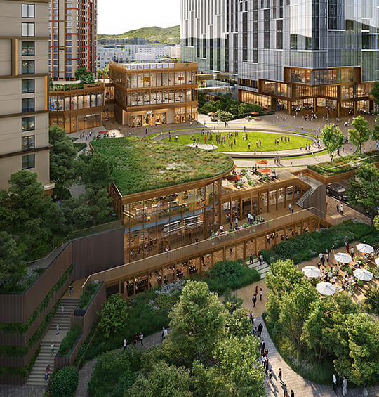 프리미엄 대단지 아파트, 수준 높은 웰니스 레지던스호텔 메리어트, 프라임 오피스, 대규모 쇼핑몰까지모두 걸어서 연결되는 미래형 융합 타운